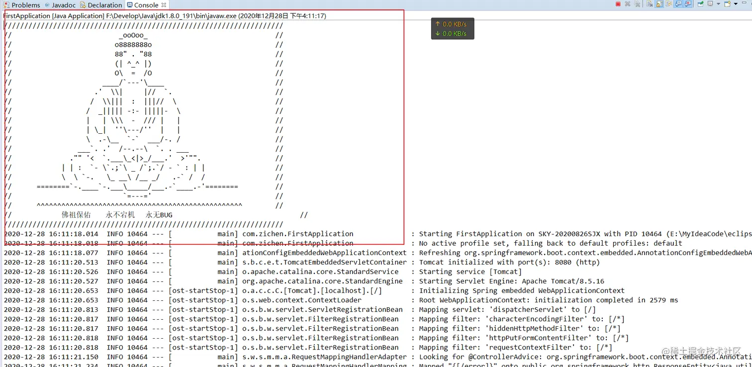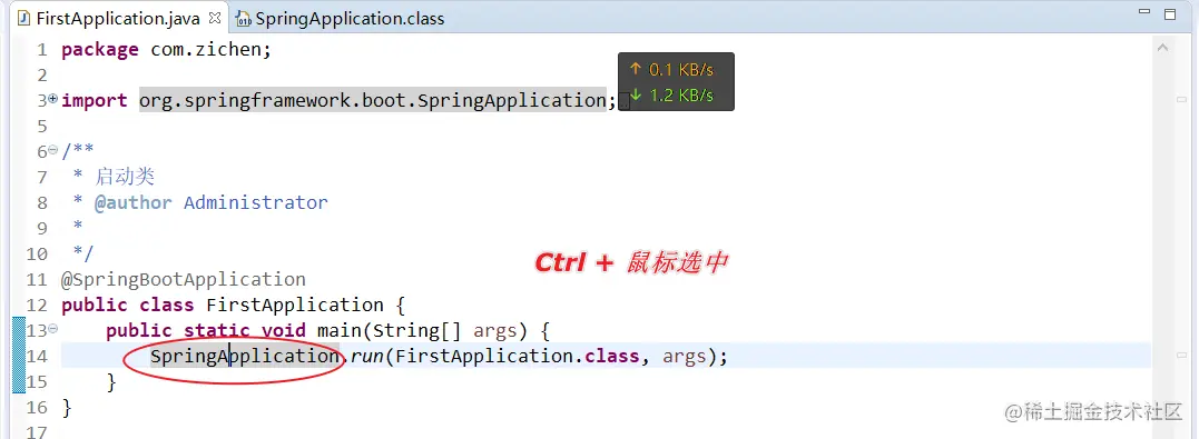 /** * 启动类 * @author Administrator * */ @SpringBootApplication public class FirstApplication { public static void main(String[] args) { SpringApplication.run(FirstApplication.class, args); } } -