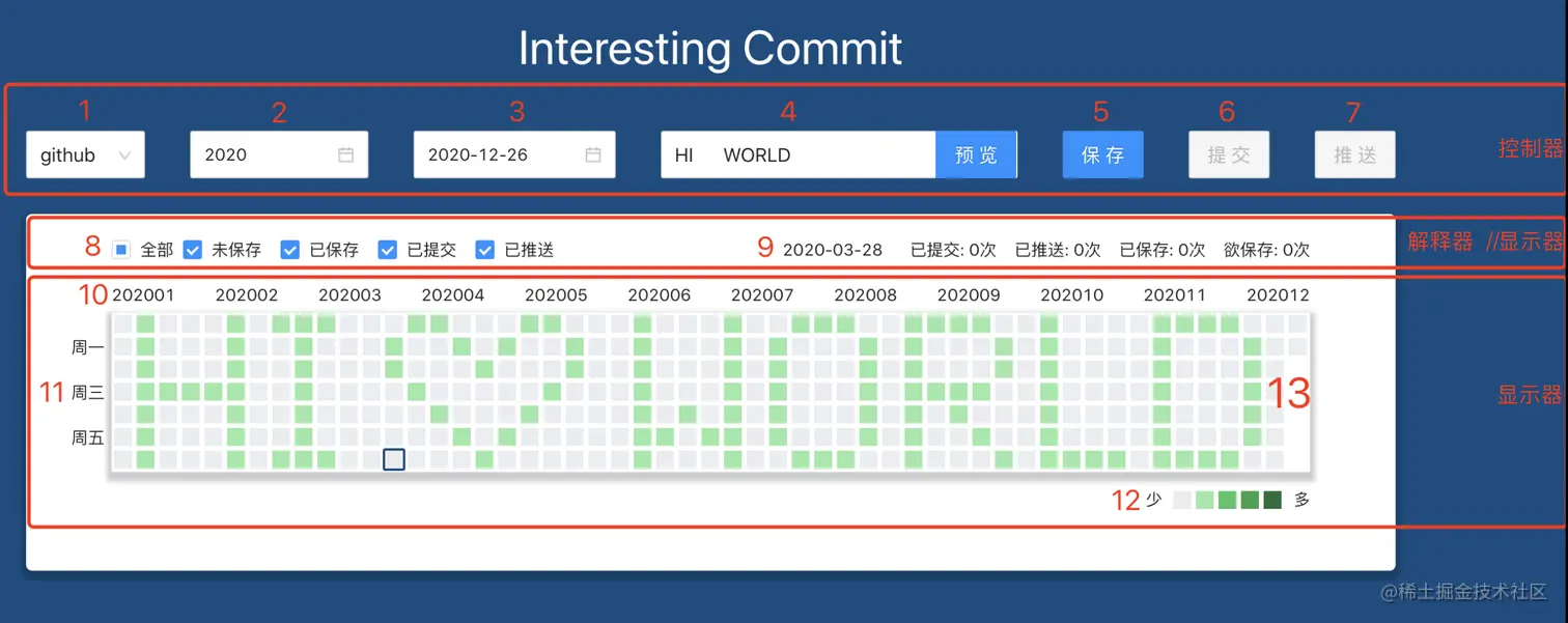 commit-ui是commit项目的前端操作界面,主要分为控制器、解释器以及显示器三个部分。