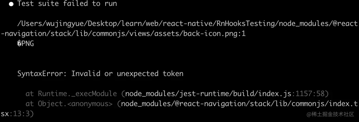 我们来分析错误,很明显这个是 react-navigation 导航的返回的图片,既然知道是 react-navigation 的错误,接下来就很简单了,首先去 react-navigation 的 github 中的 issures 中搜索,结果我看到了我想要的答案 "Syntax Error: Invalid or unexpected token" with .png #2663 ,热心的好友们提供了自己觉得可行的方案,我尝试我下面的方案,发现成功了,至于为什么目前我还不清楚。