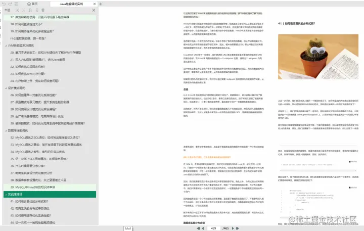从目录就可以知道内容实在是太多了,我就不很详细的去解释了,开篇就说了想把这份阿里P8架构师手敲20W字的调优实战笔记分享给大家,还有更多的MySQL、Tomcat、JVM等的面试和我熬夜纯手绘的思维脑图以及收集的各大笔记,还请注意:戳这下载,获取码:掘金