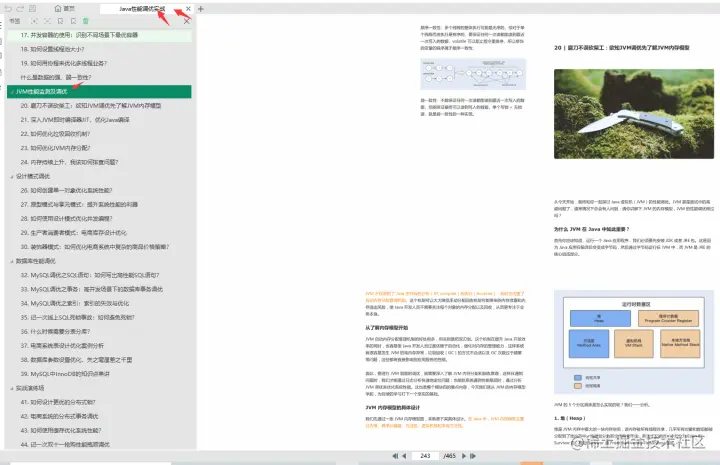 我心想,2021都要来了,是不是也有很多朋友同样在JAVA性能调优这一块掌握的不够呢?所以今天来写这篇文章,就是想给大家分享一份阿里P8架构师手敲20W字的调优实战笔记,另外尤其对于MySQL、Tomcat、JVM这三,看看我为其手绘对应的架构思维脑图以及面试相关的高频真题及答案,并且奉上收集的必刷笔记!
