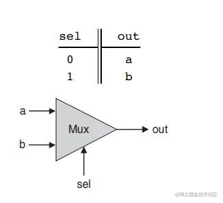 其结构如上,它有三个输入:a, b, sel。根据sel的不同输出a或b。
