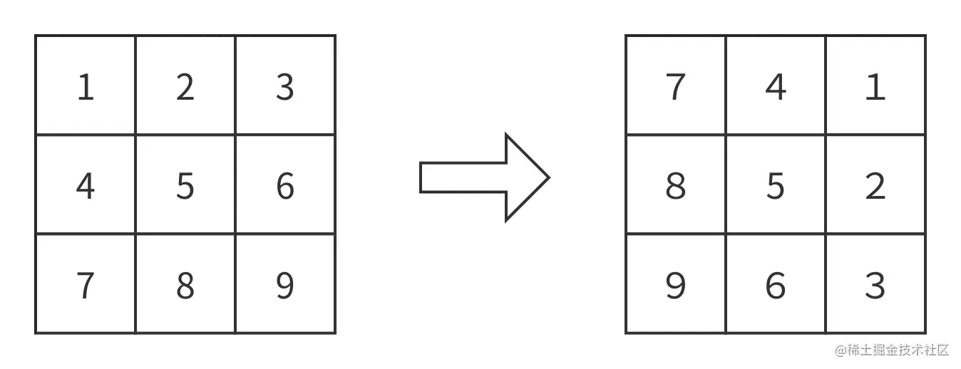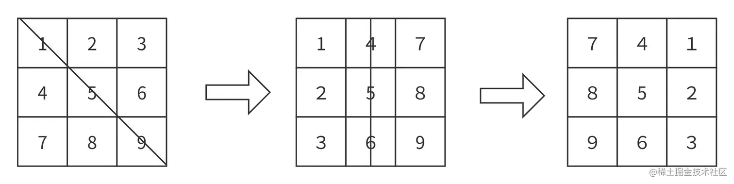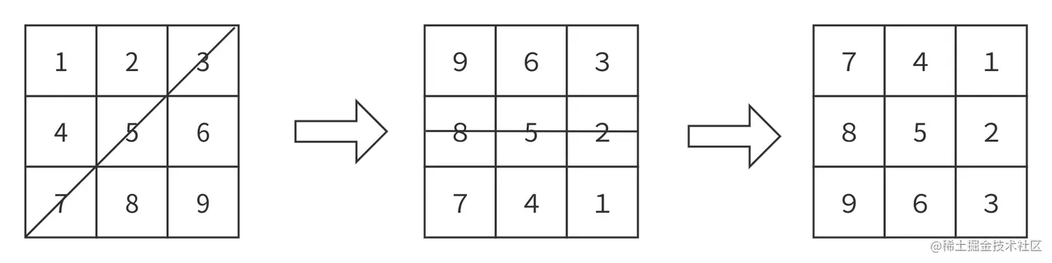第二种方式就反转和旋转数组一题一样我们直接观察输入图与目标图通过怎样的变换可以得到