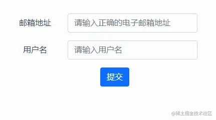 表单的校验就是在用户输入的时候判断输入的内容是否合法,不合法的时候实时在表单下面进行错误信息提示。那么就需要在上面定义的组件上面新增一个属性 rules, 用来传递用户对当前表单元素的规则;然后在 blur 的时候,遍历规则rules校验输入的内容。以邮箱输入框校验为例说明。