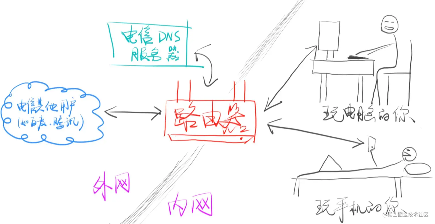 - 外网 IP : 电信分配给路由器的。你的所有设备是同一个外网 IP,重启路由器是可能会被重新分配新的外网IP