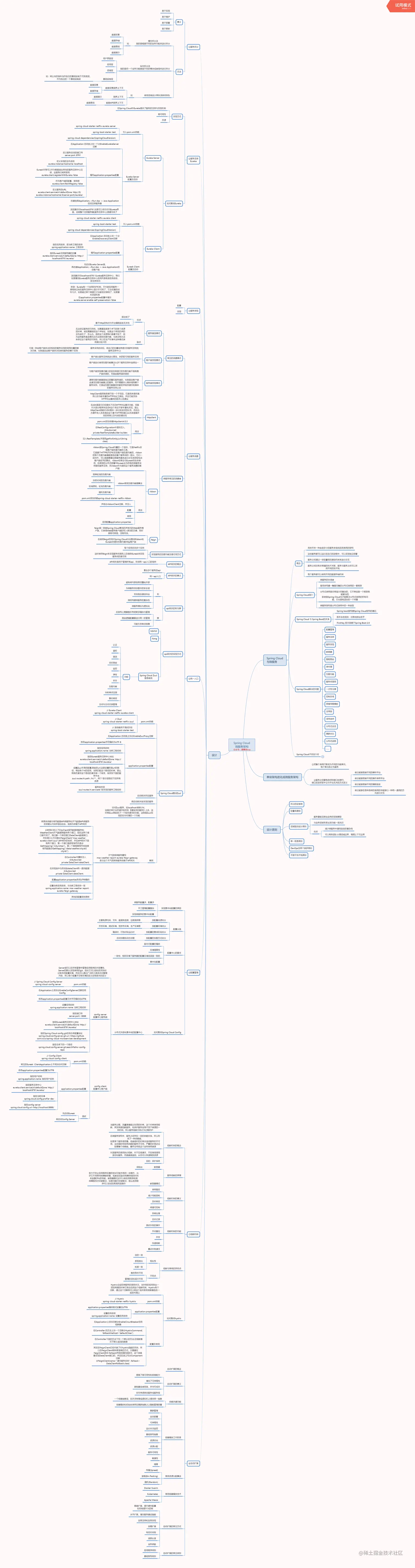 毫无疑问,Spring Cloud 是目前微服务架构领域的翘楚,无数的书籍博客都在讲解这个技术。不过大多数讲解还停留在对 Spring Cloud 功能使用的层面,其底层的很多原理,很多人可能并不知晓。实际上,Spring Cloud 是一个全家桶式的技术栈,它包含了很多组件。本文先从最核心的几个组件,也就是 Eureka、Ribbon、Feign、Hystrix、Zuul 入手,来剖析其底层的工作原理,小编这里总理一份详细的Spring Cloud的思维导图,还有Spring全家桶1187页PDF,关注公众号:麒麟改bug。