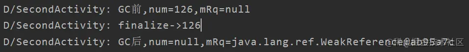 Log.d(TAG, "GC前," + "num=" + mWeakReference.get().i + ",mRq=" + mRq.poll());