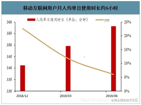移动互联网用户月人均单日使用时长约6小时