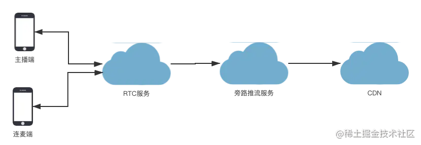 市面上分析连麦方案的已经很多,主要分为CDN连麦,以及RTC连麦2种,下面先看一下RTC连麦方案。