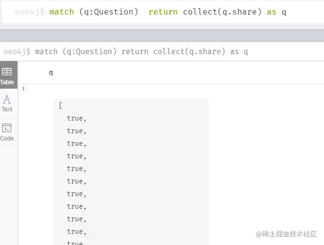 - 查询所有question中的share属性 并在一个数组中展示。