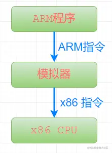 - 用户模式(User mode):利用动态代码翻译机制来执行不同主机架构的代码,例如:在x86平台上模拟执行ARM代码,也就是说:我们写一条ARM指令,传入整个模拟器中,模拟器会把整个指令翻译成x86平台的指令,然后在x86的CPU中执行。