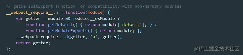 传入了一个模块,返回一个getter方法,此处是一个高阶函数的应用,实现的功能是当模块的__esModule属性为真时,返回一个getDefault( )方法,否则返回getModuleExports( )方法.