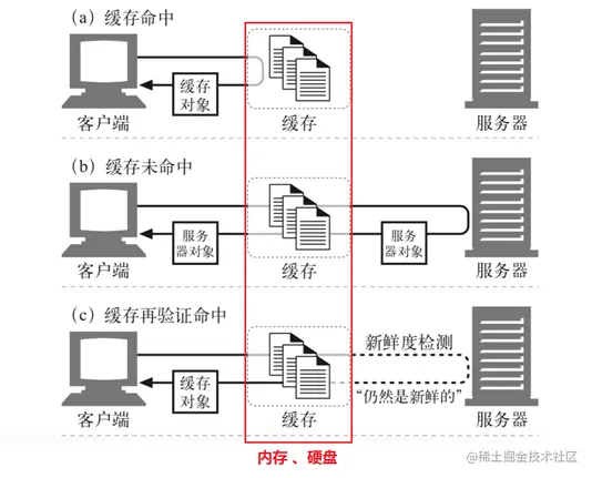 浏览器缓存主要是为了减少服务器的负担,提高网站性能,加快客户端加载网页的速度,所以浏览器缓存属于一种客户端缓存,缓存的资源文件一般存放在内存与本地磁盘中 。