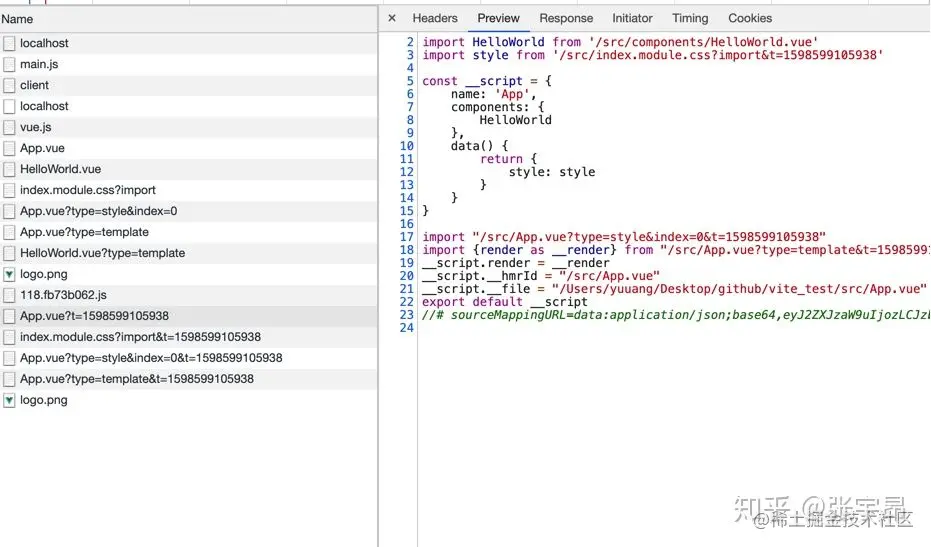 可以看到页面重新请求了一个新的 App.vue 文件。且由于这个新文件的代码中包含新的带有时间参数t的 index.module.css 请求。所以我们也同样发起请求获取了新的 index.module.css 文件。