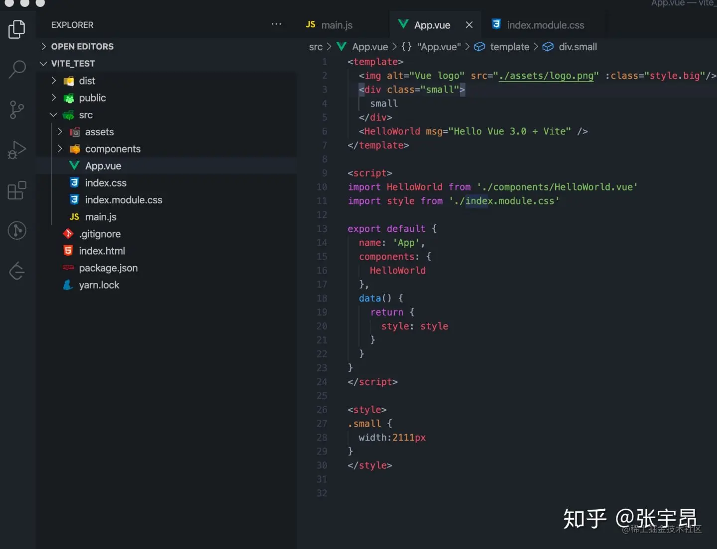 // 在这个例子里我们称 App.vue 为导入模块 称 index.module.css 为被导入模块