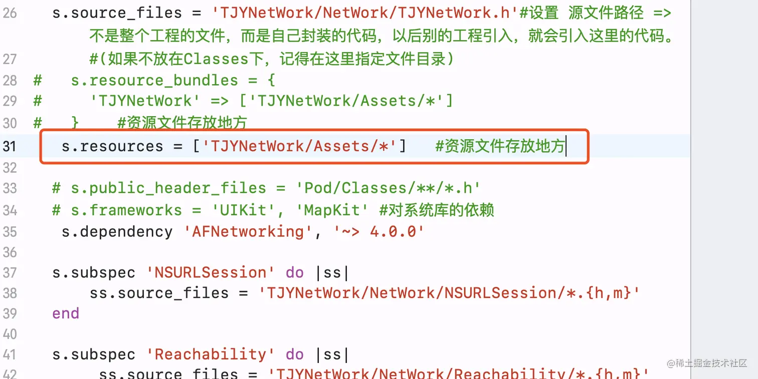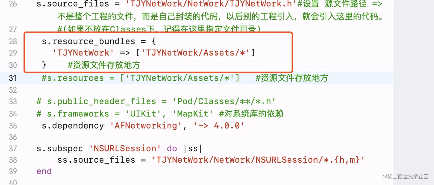 2.1进入TJYNetWork.podspec写上resources和路径