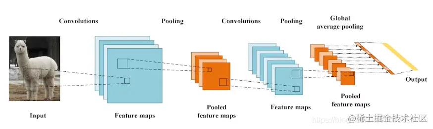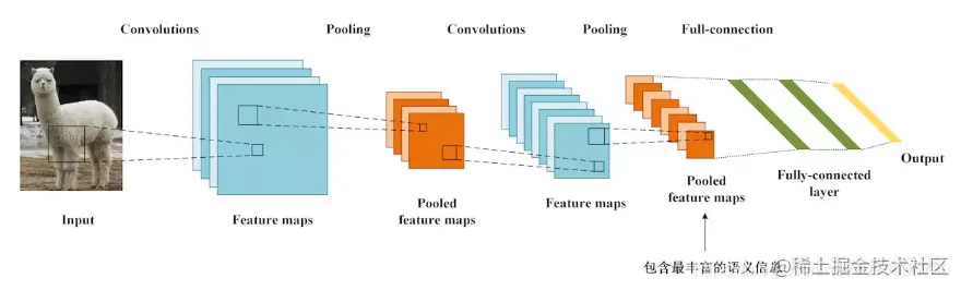 上面是一个传统CNN的结构,通过卷积和池化层后,把特征图拉平成一维,然后是全连接层进行分类。