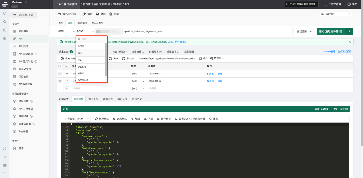 JMeter同loadrunner一样,都是以性能测试出名,一般用JMeter也是做接口性能测试。例如java+Jmeter+ant+jenkins做接口性能监听测试。JMeter如何做接口测试,大家可以网上查下。 写在最后:上面说了这么多工具,基本覆盖了接口功能测试,接口自动化测试,接口性能测试。这里提一下,国内有个综合性的Saas测试工具,不用部署,界面也比较简洁,叫Eolinker,使用地址我贴在下面,自己试试就知道了。 使用地址:www.eolinker.com