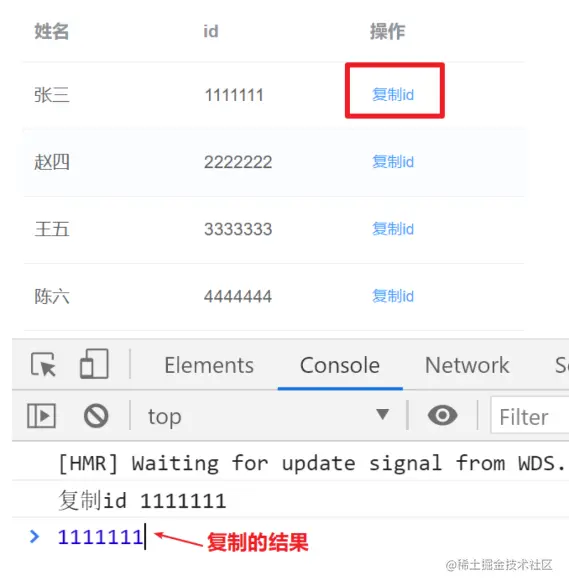 <el-button type="text" size="mini" @click="copyid(scope.row.id)">复制id</el-button>