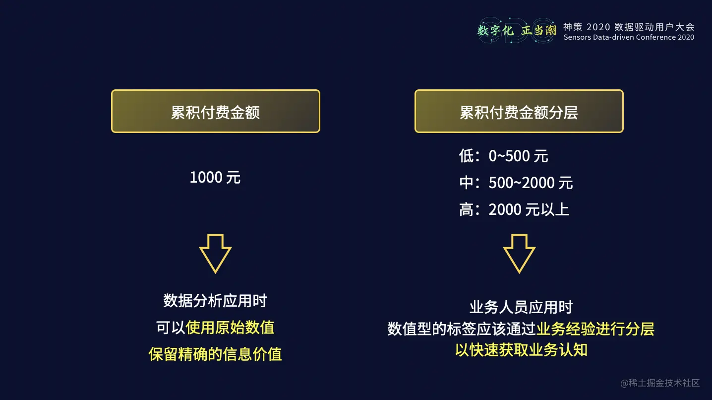 但是,假如一个用户的累积付费金额是 1000 元,当你看到这个标签时,是否能够快速作出反应?