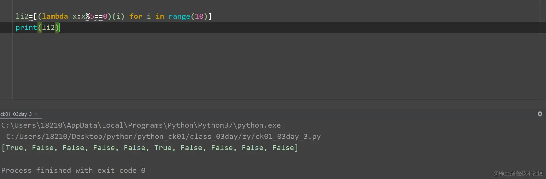 li2=[(lambda x:x%5==0)(i) for i in range(10)]