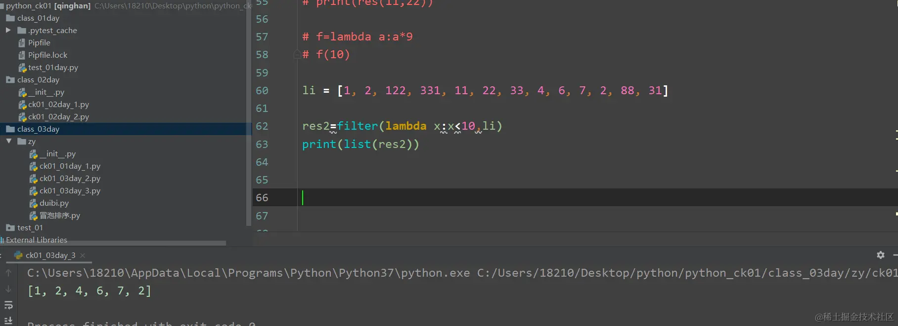 x<10的都保留下来,当然你也可以修改成x<33或者其它的,具体看列表里面的元素,设置的条件不一样,输出的结果就不同。