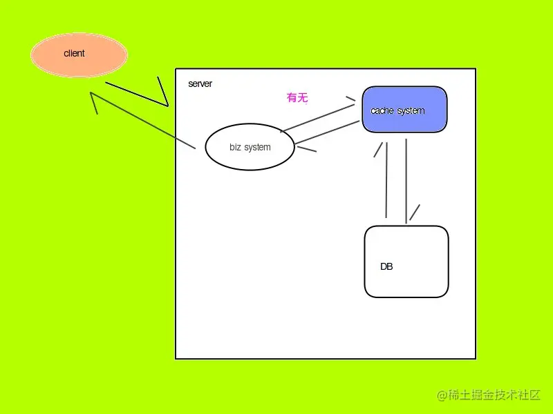 当客户端请求到服务器时候,对应的业务系统从缓存系统中读取,如果缓存系统中的不存在就从数据库内读取,非常简单。