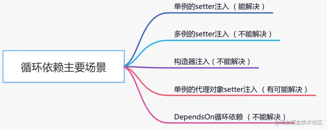 下面用一张图告诉你,spring是如何解决循环依赖的: