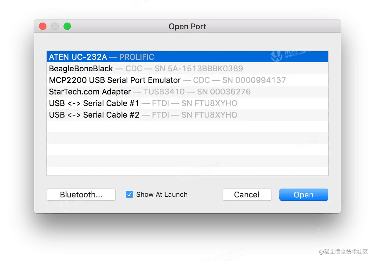 消除使用串行端口的猜测。Serial识别您连接的设备并按名称和类型列出它们,这样您就不必破译其神秘的BSD / dev路径。更好的是,Serial允许您以对您有意义的方式重命名您的设备。