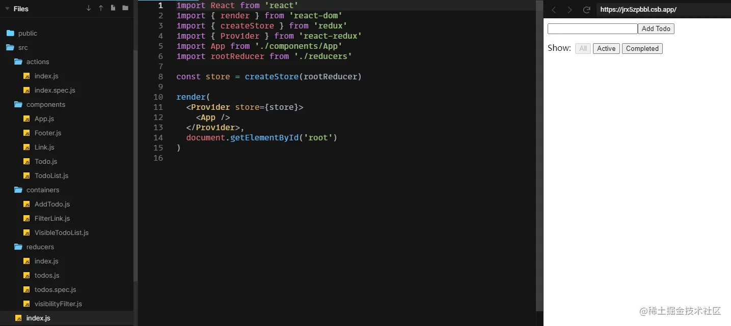 由于redux是与框架无关的全局状态管理方案,在react应用中接入必须配合react-redux