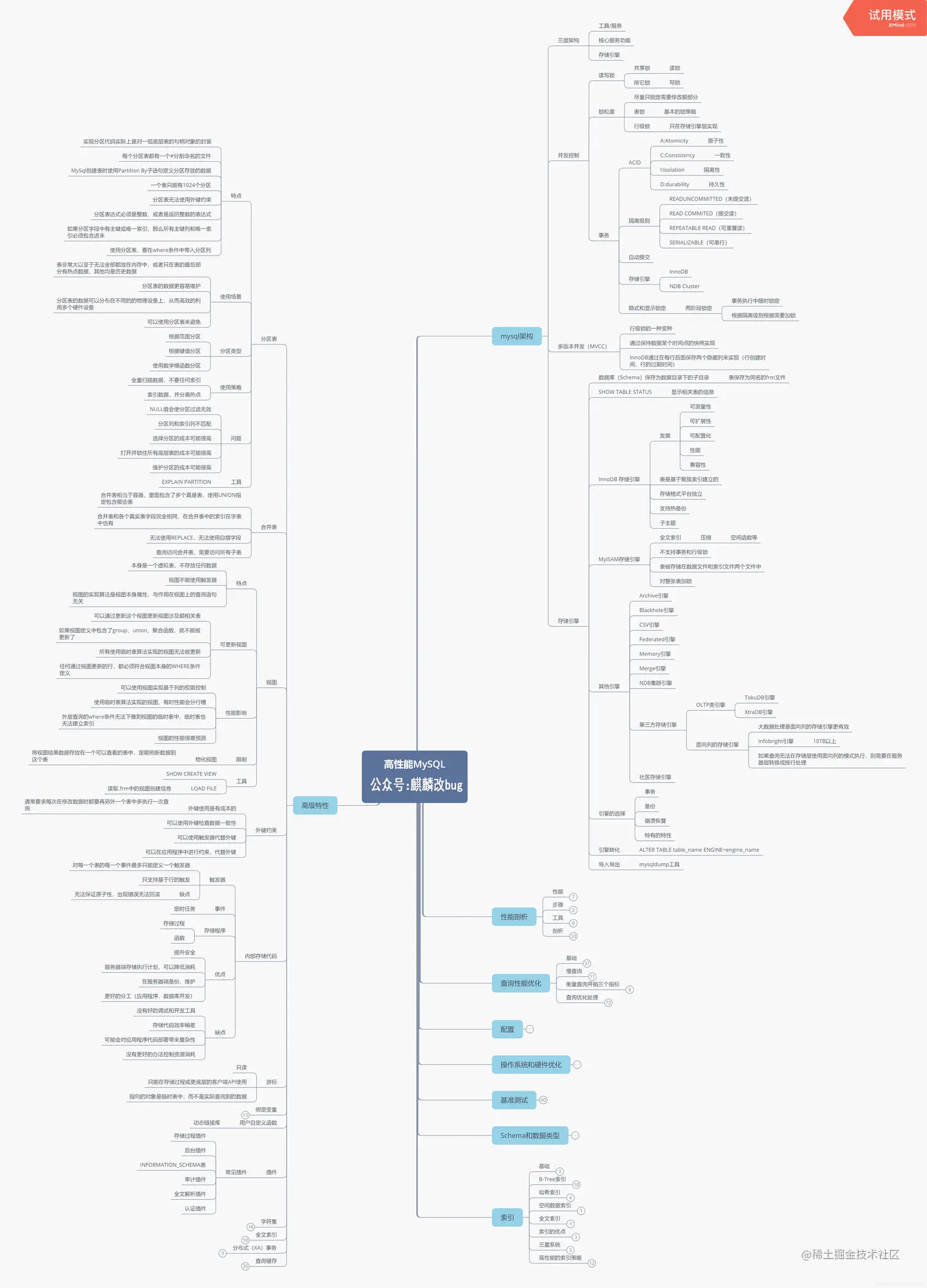 不少朋友苦于搜集资料耗时耗力,很难cover主面试官的考核角度。为了让大家在准备面试时少走弯路,这里小编熬夜一周为大家精心准备的一份MySQL核心技术思维导图以及各大厂MySQL面试的主流考点,经过多次迭代,最终形成了这份MySQL面试文档及学习笔记,关注公众号:麒麟改bug。
