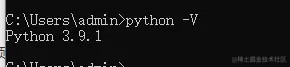 1.2. 输入命令"python -V"查看版本号验证安装是否成功