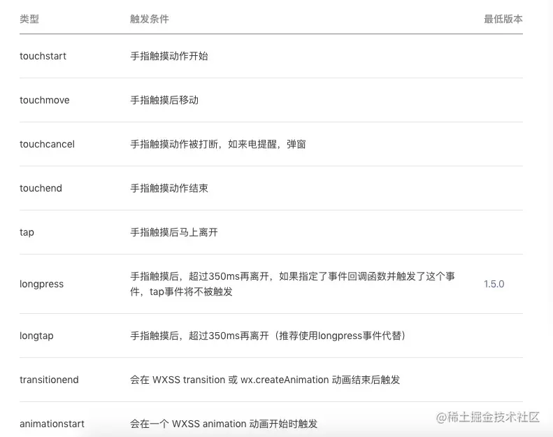 截取官方文档中的部分交互事件