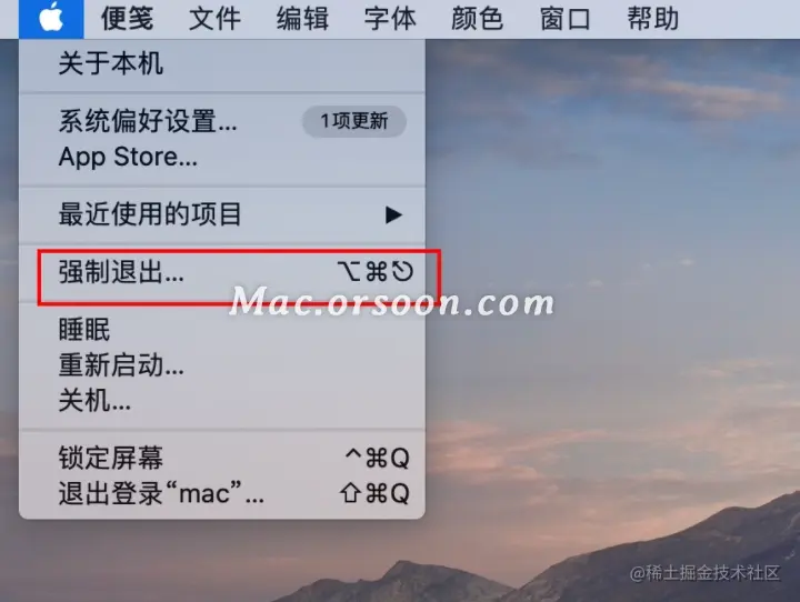 如果是程序占用,要解除程序占用。首先,点击桌面左上角的【苹果图标】。