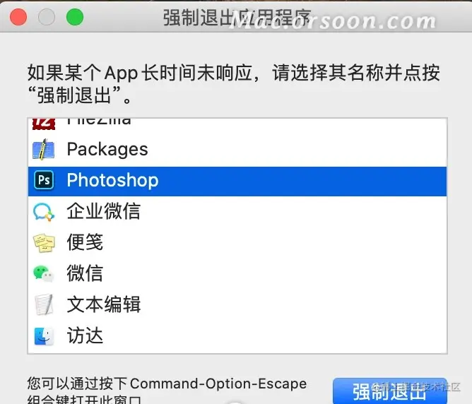 ***后,选择要退出的应用程序,点击【强制退出】按钮。