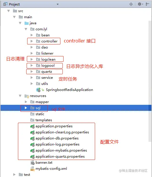 上面说的两种日志方面线程池应用已经写好了Demo,是一个 SpringBoot 项目,项目结构如下图: