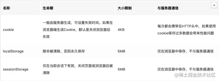 浏览器存储:local,session,cookies 异同:(生命周期、存储大小、是否和服务器交互)