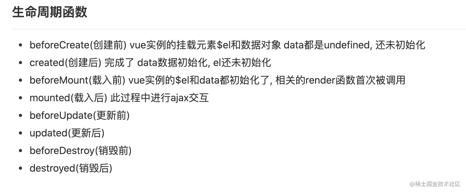 Vue 实例从创建到销毁的过程,就是生命周期,