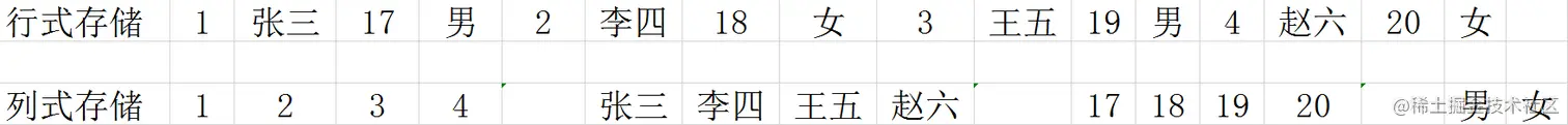 什么是行式存储,什么是列式存储?假如有这样一张表