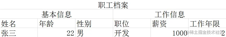 什么是列族,其实在我们日常工作中经常使用过列族,比如我们有一张职工档案表,如图