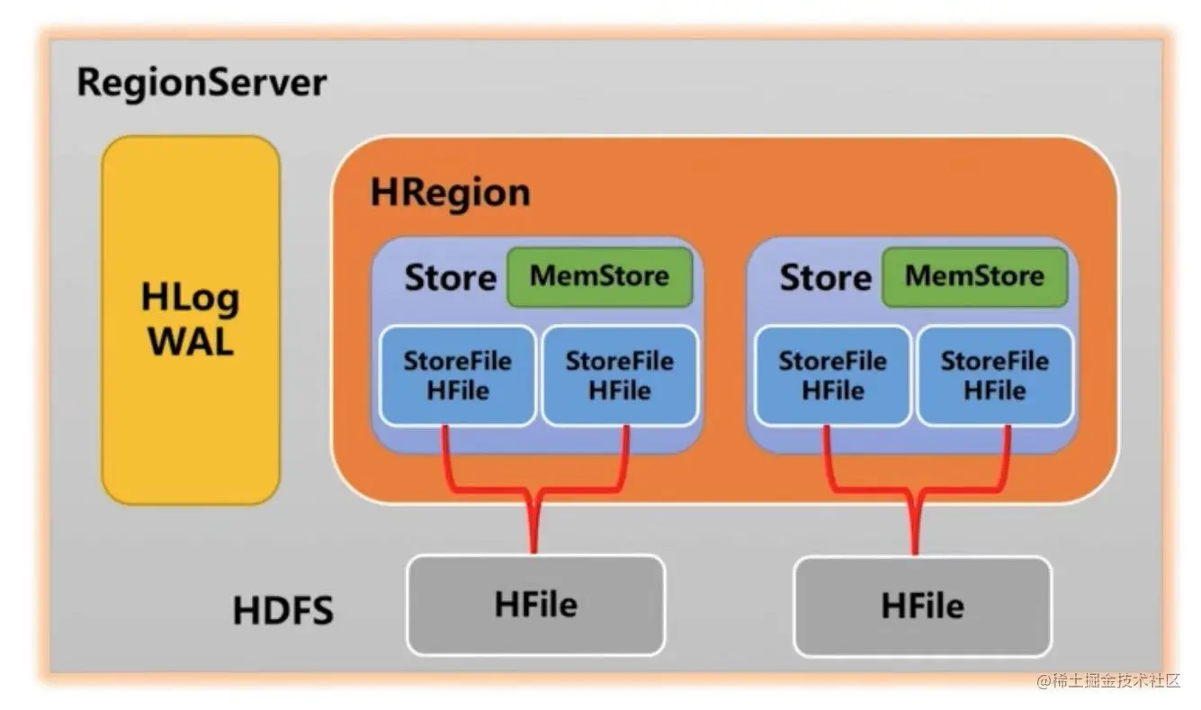 - 完成写日志后,在按照列族将数据写入到列族对应 Stroe 中的 MenStore 里。先写日志再写缓存,这样即使服务宕机,也可以通过日志恢复