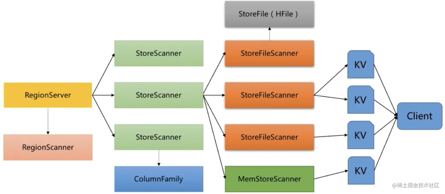 - 将 Mem Store Scanner 、Store File Scanner 扫描到的 Key - value 结构的数据封装之后返回给客户端
