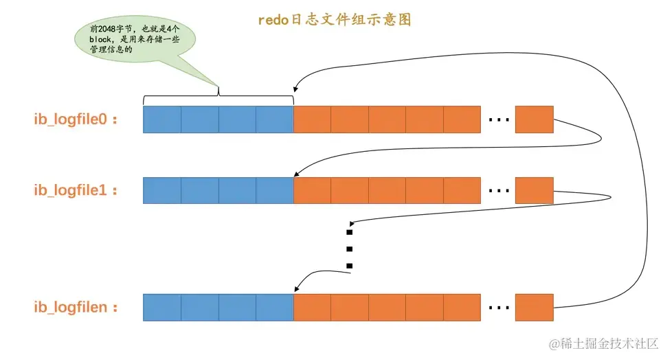 - 从2048字节之后事用来存储log buffer中的block镜像的。