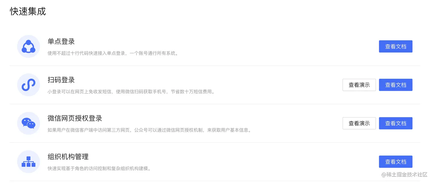 Authing 提供大量的快速集成方案,省去了查看各种文档的时间。