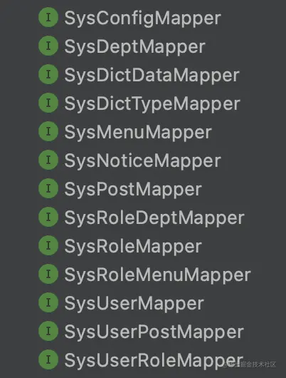 此时,就相当于完成了写一堆用户、机构、角色信息表、关联表类、一堆 mapper 以及接口类。