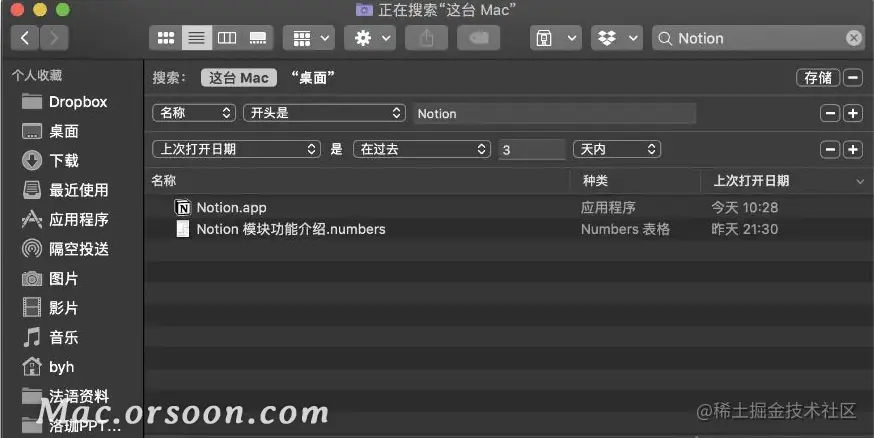 如果这时候我再点击 「+」,新增一个检索条件为「上次打开日期在过去 3 天内」,文件数就只剩 2 项了。