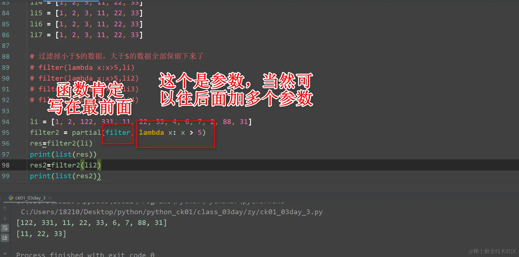 之前学到的内置函数中filter中,调用的时候需要传入 2 个参数,第一个是函数,第二个是需要过滤的可迭代类型的数据。