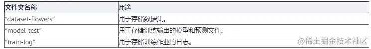 - “训练输出位置”:从已有的OBS桶中选择模型和预测文件存储路径。使用准备工作中已创建好的“**model-test”**文件夹。如果没有可用文件夹,您可以单击“选择”,在弹出对话框中新建文件夹。