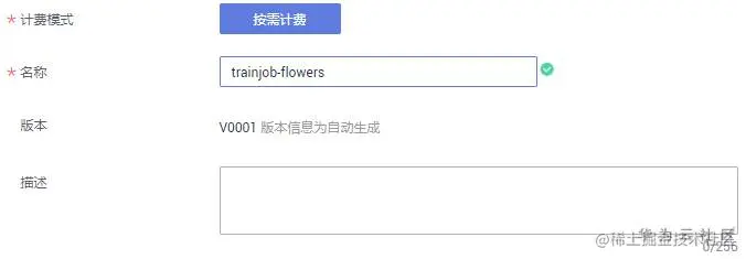 - 在基本信息区域,“计费模式”和“版本”为系统自动生成,不需修改。请根据界面提示填写“名称”和“描述”。