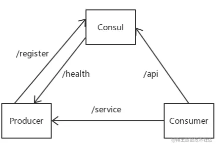 - Consumer 请求 Consul 的接口获取 Producer 服务的元数据;